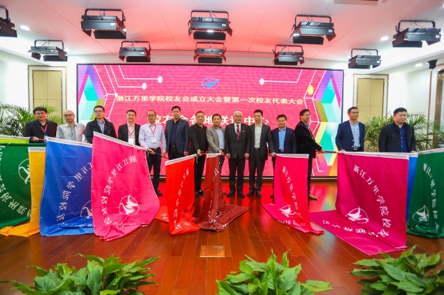 会议最后,举行了浙江万里学院校友会各地联谊中心授旗仪式。