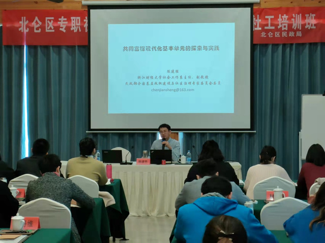 第四期培训班以专题讲座、现场教学等方式进行,专门邀请了浙江万里学院社会工作系副教授陈建胜、浙江万里学院社会学博士江华锋、宁波首个高级社会工作师李旭、鄞州区潘火街道王家弄社区书记胡明敏等多名教授、专家进行授课。讲师们围绕高级社工师职称取得培训、社区营造——社区亮点的发掘和设计、共同富裕现代化基本单元的探索和实践、社区矛盾纠纷化解技巧等内容作专题讲座。