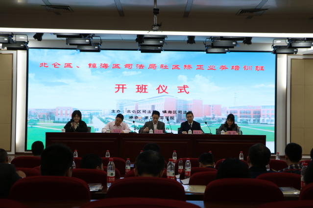 为进一步提高社区矫正工作质量,加强对基层矫正工作的业务指导,10月28日上午,由北仑区司法局、镇海区司法局主办,浙江万里学院承办的北仑区、镇海区司法局社区矫正业务培训班开班仪式在浙江万里学院钱湖校区图书馆报告厅圆满完成。50名来自两区的干部与相关工作人员参与了本次培训。镇海区司法局副局长吕理其、镇海区社区矫正管理局局长毛良富、北仑区社区矫正管理局局长陶红、浙江万里学院继续江南手机app下载安装 学院执行院长杨文杰出席了本次开班仪式,并作了重要讲话。