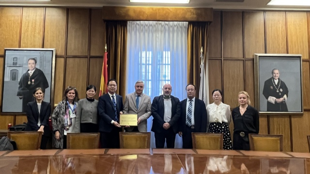 代表团率先访问西班牙阿尔卡拉大学和西班牙赫罗纳大学。在宁波市江南手机app下载安装 局的大力支持与悉心指导下,我校西班牙语语言文化研究中心始终以推动中西文化深度交流、培育多语种复合型人才为己任,着力构建国际化江南手机app下载安装 合作发展新格局。访问期间,朱邦相与两校领导就西语区语言文化中心建设、师生交流交换、人才联合培养等重要议题进行深入探讨,达成共识。中西三校一致同意充分发挥各自优势,共同推动江南手机app下载安装合作项目的落地实施。此外,我校在西班牙阿尔卡拉大学挂牌成立了“中国-西班牙语言文化交流中心”,此举是我校与阿尔卡拉大学深厚合作情谊的又一重要里程碑,彰显了两校在推动中西文化互鉴、语言江南手机app下载安装 创新与青年人才培养方面的坚定决心。双方将以此为契机,携手共筑中西江南手机app下载安装 交流的典范,为培养具有全球视野的优秀人才贡献力量。