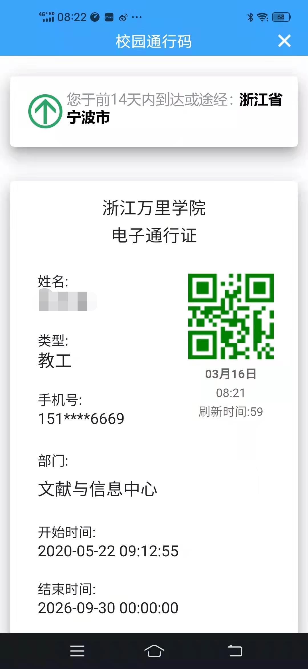 注意:①您获取的校行码有效期为24小时,超时请重新获取