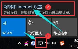 Ø 找到电脑桌面右下角状态栏的网络图标,点击网络和internet设置