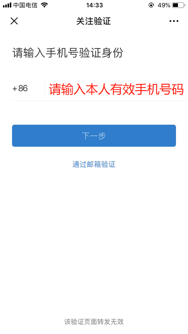 输入本人有效手机号码(同步骤6中更新的手机号码)。