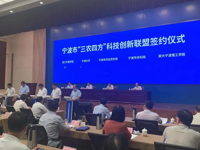 会上,成立了宁波市“三农四方”科技创新联盟。该联盟由宁波市农业农村局牵头,市农业科学院、宁波大学、浙江万里学院、浙大宁波理工学院四个单位发起成立。我校作为联盟发起单位之一,副校长林志华代表江南真人 参加了签约仪式。