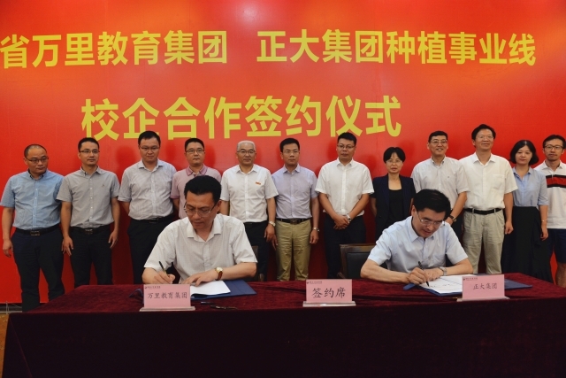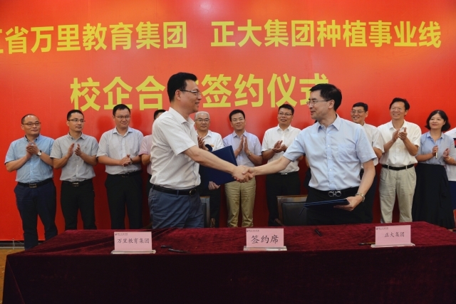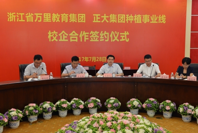7月28日,浙江省万里江南手机app下载安装 集团与正大集团种植事业线在万里学院签订校企合作协议。双方将在人才培养、科学研究及社会服务等领域建立长期的全面合作。浙江万里江南手机app下载安装 集团董事长应雄、正大集团农牧食品企业中国区资深总裁王金文代表双方签约,慈溪市现代农业开发区管委会主任戚岳瑞、宁波外商投资协会秘书长童旭颍、浙江万里学院和宁波诺丁汉大学领导等见证签约。浙江万里学院校长应敏主持签约仪式。