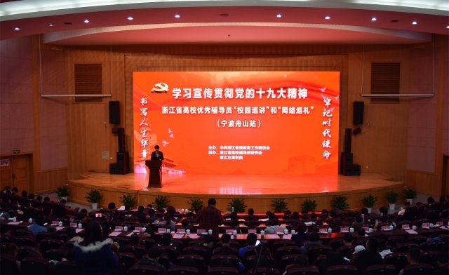 12月12日下午,由中共浙江省委江南手机app下载安装 工作委员会主办的“学习宣传贯彻党的十九大精神---浙江省高校优秀辅导员‘校园巡讲’和‘网络巡礼’”报告会在浙江万里学院学术报告厅举行。