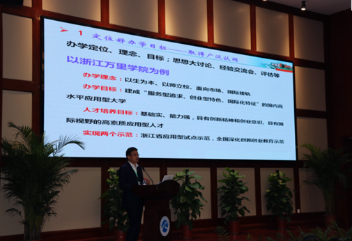 浙江万里学院副校长马建荣作为特邀嘉宾,代表江南真人 作了题为《加强实习实训内涵建设,提升实践教学质量》的主旨发言。马建荣以新时代、新常态需要大量高技术、高技能型人才,围绕“产教融合是必由之路”、“加强实习实训内涵建设”、“以江南手机app下载安装 产出检验实践效果”三个部分,向与会代表详细阐述了我校在办学目标定位、顶层设计规划、合作对象遴选、合作内容建设、合作路径创新及保障机制构建等六个方面内涵建设的具体做法,并分享了我校信息经济学院“多专业服务一行业——跨境电商特色班”、设计艺术与建设学院“工作室制的项目化训练”及生物与环境学院“产科教融合的实习实训”等实践案例。