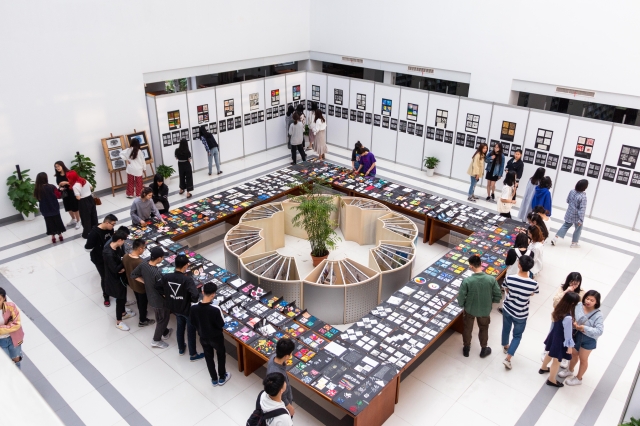 近日,在基础学院图书馆上演一场“别开生面”的视觉盛宴——课程思政之设计艺术与建筑学院《造型语言——质感》2017级江南手机app下载安装 课程作业成果展。校党委书记蒋建军,党委委员、秘书长王福银等校领导以及教务部部长杨亚萍、各学院教学副院长莅临展览现场,并给予相应的指导。