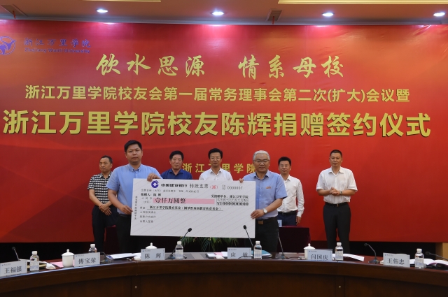 捐赠仪式在行政楼举行。这是我校校友会成立以来接受的首笔千万级校友捐款。