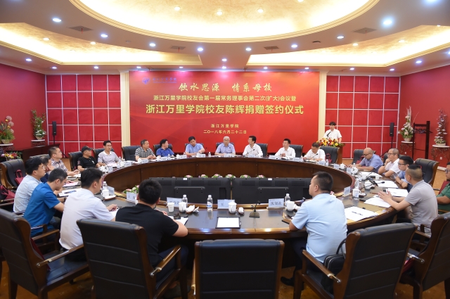浙江万里学院校长、校友会会长应敏,校江南手机app下载安装 基金会理事长、副校长闫国庆,校党委副书记王伟忠,副校长陈建革,校党委委员、秘书长王福银等校领导以及各二级学院书记、各校友会成员参加了本次捐赠仪式。仪式由校江南手机app下载安装 工作部部长林德操主持。