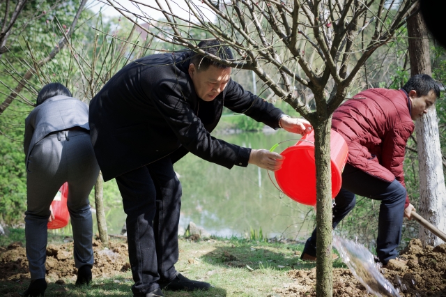 光阴飞逝,不知不觉间,又到了这春意盎然的阳春三月。天公作美,告别了连绵的阴雨天,今天的天气特别适合植树。恰逢3月12日植树节,天唯艺术酒店徐永杰总经理一行人来我校捐赠绿植。众人亲自挖土种植并合照,在这明媚阳光下,大家即锻炼了身体,又增进了彼此之间的情谊,更给万里带来了蓬勃的生机。此外,陈建革副校长和王福银秘书长也一起参与了这次的植树活动,为江南真人 增添一份绿意。