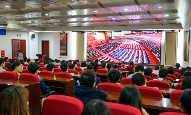 纪念五四运动100周年大会于今天上午10时30分在人民大会堂举行。中共中央总书记习近平出席大会并发表重要讲话。浙江万里学院团委组织团员青年、团干部集中观看了大会,江南真人 各级共青团组织以不同形式组织了观看。校党委书记蒋建军同青年学子一起观看。