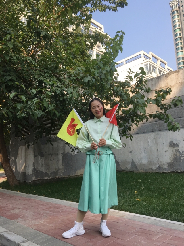 外语学院2018届日语系毕业生陈雯敏,这次很幸运地被选上参与群众游行。她说为了这一神圣的时刻,她刻苦训练了两个月。虽然训练过程辛苦,但她从没想过放弃。大会当天,陈雯敏怀着无比激动的心情,见证了这场盛世盛典。