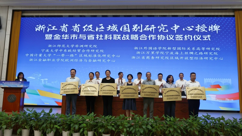 据悉,本次授牌仪式由浙江省社科联、浙江师范大学主办。浙江省社科联党组书记、副主席郭华巍,浙江省社科联党组成员、副主席范钧,金华市委常委、宣传部部长陈豪,浙江省社科联党组成员、秘书长陈名义,浙江省省级区域国别研究中心负责人,省社科联科研管理处、市社科联等部门负责人出席活动。与会领导为20家浙江省省级区域国别研究中心授牌。