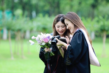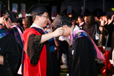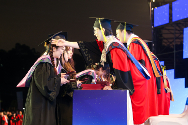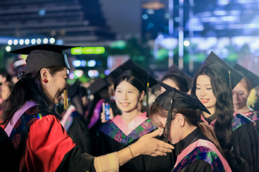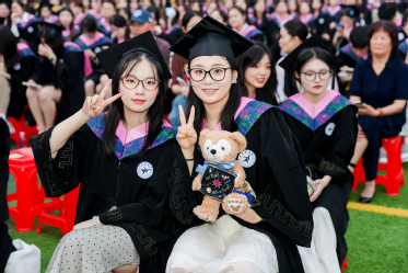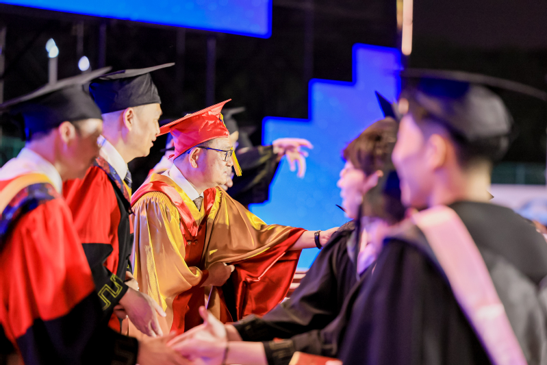 学位授予仪式上,本科生与研究生毕业生代表身着学士服、头戴学士帽,依次上台、列队整齐,庄重地接受这一神圣的时刻。各二级学院院长、书记亲自为毕业生拨穗、颁发学位证书,与每一位毕业生合影留念,定格这一珍贵瞬间。典礼在《再见》的合唱声中落下帷幕,从此山高水长皆可往。