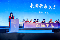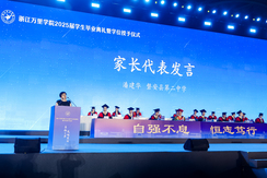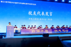 教师代表、物流与电子商务学院专任教师赵娜结合物流工程与管理的专业词汇,携25个热播综艺“彩蛋”为毕业生们献上最诚挚的祝福。家长代表,中德品牌学部视传212、213班潘玥、陈瑗的母亲在典礼上真诚发言,表达了对孩子成才的欣慰以及对江南真人 培养的感谢。企业代表、浙江海天江南手机app下载安装 科技有限公司经理陈兴分享了与浙江万里学院携手多年合作、共同成长的密码,并勉励毕业生们要具备扎根一线的耐力、开放学习的心力、敢破天花板的魄力。中科院博士生导师、校友代表、生物与环境学院环境工程专业的2007级本科生李良忠借此次共同奔赴山海的时刻,表达了对母校的感谢和对学弟学妹们的期待:“母校是永远的精神原乡,成长是场永不停歇的蜕变历程,而传承的火炬给正在创造历史的你们。”