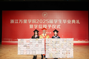 6月12日下午,“我与校长合张影”活动在钱湖校区素拓中心开展。毕业生们或是带着自己的学位毕业证,或是带着这四年来大大小小的荣誉证书、奖状,与校长林志华花式比心、合影。期待小碗仔们将携着过往的荣光与校长的殷殷期盼,迎接属于他们的全新人生阶段,郑重地祝浙江万里学院2025届毕业生们毕业快乐!