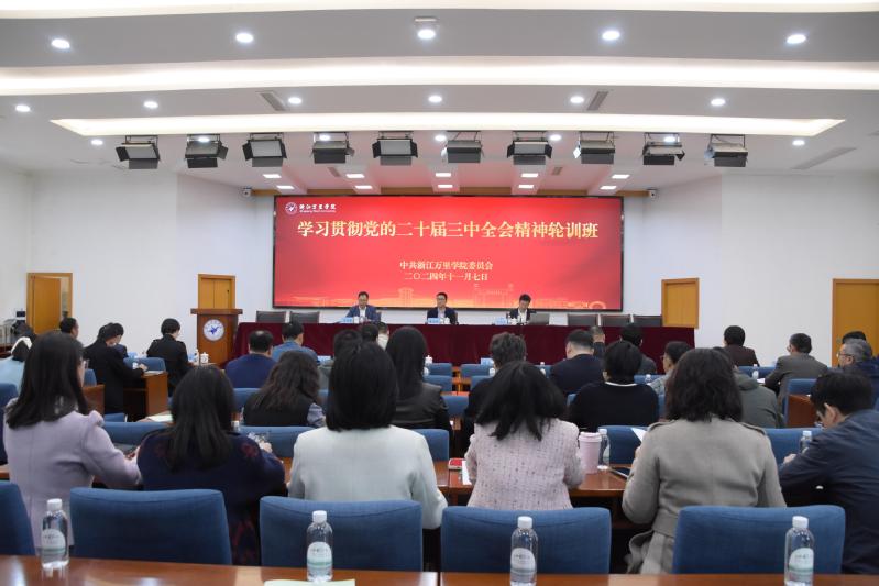 工委的统一部署,11月7日下午,全校中层以上干部学习贯彻党的二十届三中全会精神轮训班开班。校长林志华做动员部署,党委书记王伟忠做专题辅导报告。校领导班子成员、全体中层干部参加会议。党委副书记朱邦相主持。