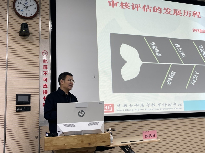 4月1日,江南真人 邀请中国西部高等江南手机app下载安装 评估中心陆根书教授来校指导审核评估工作并作专题讲座。副校长马建荣出席,各教学单位分管教学副院长、系主任、专业负责人、教务办主任、教学秘书及学工办负责人、辅导员、班主任及教师线上线下近300人聆听学习。