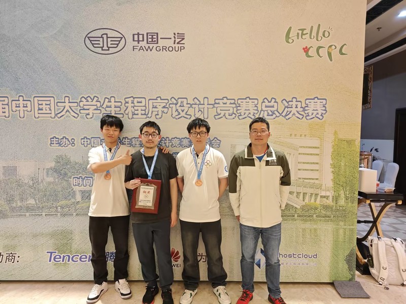 我校大数据与软件工程学院计算机科学与技术专业211班的赵之钰、203班周启鸿,数据科学大数据技术专业23C1班的竺夏组成MikuFans团队,凭借扎实的编程基础、灵活的思维和默契的团队配合,在五个小时的激烈角逐中齐心协力、顽强拼搏,荣获全国铜奖,成为此届大赛宁波高校唯一一支获奖队伍。