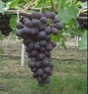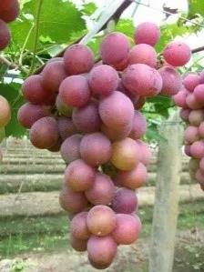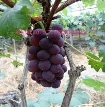 品种特性:该品种为欧美杂种。树势强,叶色浓,叶面光滑无毛。一般穗重500-700克。果实椭圆形,平均粒重12克左右。果皮厚韧,紫红色,果粉中等。果肉硬,风味甜,可溶性固形物17%以上。宁波地区大棚保护地栽培之成熟期一般为7月底至8月中旬。多年田间调查表明,该品种抗病性达到与巨峰和藤稔相等水平。该品种产量稳,品质优,耐贮运,适宜浙江省种植。目前为浙江省主栽品种之一。