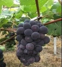 品种特性:嫩梢绿色,成熟枝条呈绿色,节间较短。幼叶叶片绿色,叶正面较多绒毛, 叶背有较密的灰白色绒毛。成龄叶中大,近圆,3裂,裂刻浅,较粗糙,锯齿较小, 较锐利,叶脉近中心为绿。叶柄中等长, 呈红带绿色。果粒近球形,果肉绿黄色,成熟果实果皮紫红至紫黑色,平均单果重13g左右;果皮中厚且与果肉易分离,果粉中等厚;浙江地区成熟7月上旬。