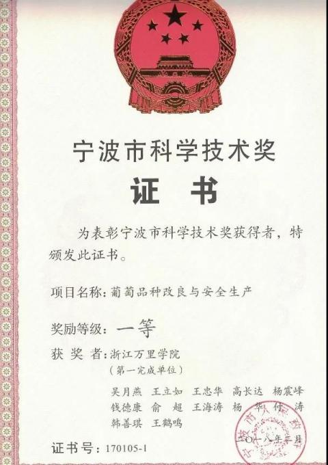 针对当前制约我国南方鲜食葡萄产业发展的关键性问题,历经20余年,开展葡萄优良种质和品种创制、安全生产以及贮藏加工等整个产业链的系统研究,形成系列原创性成果。获得葡萄新种质200余株,培育出新品种4个、新种质50余个,已获早熟优质新品种‘甬早红’、‘甬紫晶’、‘甬妃红’国家葡萄新品种权3个;‘鄞红’省级审定新品种1个,为省葡萄主栽品种之一;申报‘甬绿妃’、‘甬香玉’和‘甬早绿’3个国家新品种保护权。