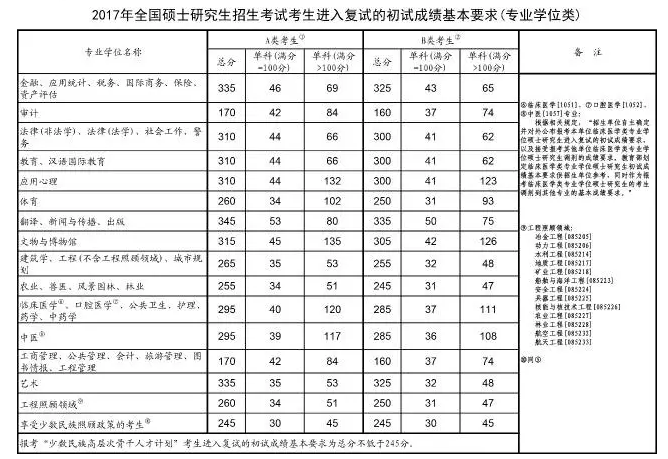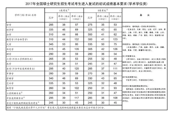 考生进入复试的初试成绩基本要求