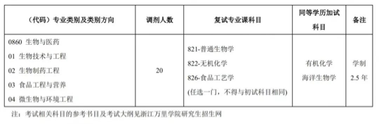 2.调剂专业:理学(生物学、海洋科学、化学、环境科学与工程、生物医学工程、基础医学、药学、中药学)、工学(农业工程、林业工程、环境科学与工程、生物医学工程、食品科学与工程、化学工程与技术、生物工程)、农学(水产、畜牧学、食品科学与工程、园艺学、作物学、农业资源与环境、植物保护、兽医学、林学、草学、环境科学与工程、风景园林学)等。
