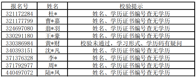 根据网报数据审核信息,如下考生的学籍学历校验存在问题。