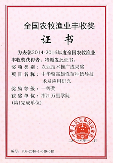 基于雌激素的调控作用,建立了一个基于芳香化酶抑制剂的胚胎期高雄性诱导技术,雄性率>90%,孵化率>90%,在浙江、湖南等地中华鳖养殖企业进行了规模化应用推广,帮助企业增加利润数亿元,获得了全国农牧渔业丰收奖一等奖(农业部)和浙江省科技进步奖二等奖。同时成功制备了ZZ伪雌鳖,目前3龄伪雌鳖的卵巢发育情况良好,已出现各级卵泡,为ZZ伪雌鳖和ZZ雄鳖交配生产全雄鳖苗的单性育种策略奠定了重要基础。