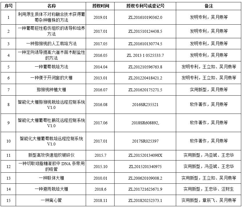 创新栽培生理和分子机制研究,构建安全优质栽培技术模式,突破葡萄采后安全贮藏保鲜和加工技术,授权发明专利7项、软件著作权2件、实用新型专利5项,发表学术论文100余篇,制定技术标准2套。