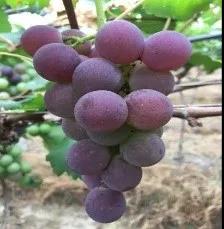 品种特性:该品种为欧美杂种。树势强,叶色浓,叶面光滑无毛。一般穗重500-700克。果实椭圆形,平均粒重12克左右。果皮厚韧,紫红色,果粉中等。果肉硬,风味甜,可溶性固形物17%以上。宁波地区大棚保护地栽培之成熟期一般为7月底至8月中旬。多年田间调查表明,该品种抗病性达到与巨峰和藤稔相等水平。该品种产量稳,品质优,耐贮运,适宜浙江省种植。目前为浙江省主栽品种之一。