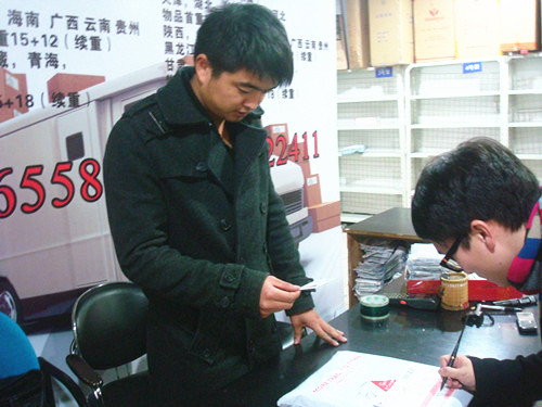 里租了一间小小的店面作为快递收发的驻点,创业步入了正轨。