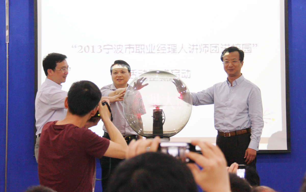 5月23日下午,宁波市职业经理人协会在浙江万里学院图书馆二楼报告厅举办了“2013宁波职业经理人讲师团进校园系列活动暨明日甬商创业联盟成立仪式”。宁波市职业经理人协会荣誉会长、浙江万里学院校长助理闫国庆,会长、宁波银亿集团的副总裁何建平,副会长、商学院党委书记孙琪等参加会议并讲话。 闫国庆、何建平和孙琪一起点亮水晶球,宣布“2013宁波职业经理人讲师团进校园”系列活动正式启动。大会汇报了宁波职业经理人讲师团进校园的宗旨和意见,公布了公布甬商创业联盟的的章程及第一届的组成人员名单,举行了创业联盟导师团与联盟社团成员的1+1结对仪式。来自宁波十多所高校的社团负责人分别于对应的导师上台结对,领取证书并合影留念。 浙江万里学院未来企业家协会会长应该同学作为江南手机app下载安装