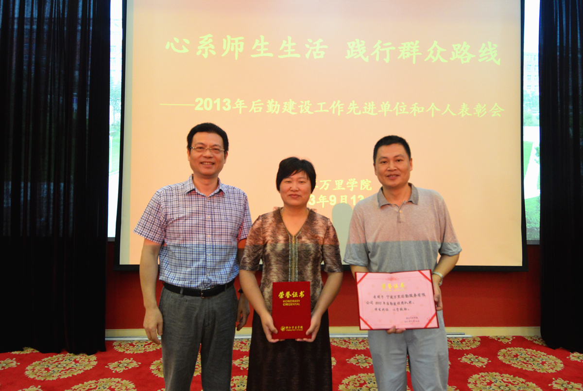 《关于表彰2013年后勤建设工作先进单位和个人的通知》,宁波万里后勤服务有限公司、宁波万里启航后勤服务有限公司荣获后勤建设团队奖,王利益等5位老师获后勤建设特别贡献奖,于咏梅等7位老师获协同服务贡献奖。出席会议的领导为获奖人员颁发奖状并合影留念。 会上,浙江省万里江南手机app下载安装